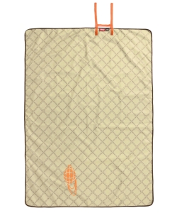 ペグで固定できるコーナーループが付いた定番のレジャーシートは、表のプリント生地と、水分を通しにくい裏生地の2層構造。水を含んだ地面の上でも浸透しにくいため、芝生の上、海や川でのレジャーなど、幅広いシーンで活躍します。大人3~4人は楽に座ることが出来る大判サイズながら、コンパクトに折りたためる手軽さも魅力。シート本体に付いているマジックテープで固定すれば、バッグのように持ち運ぶことが可能です。