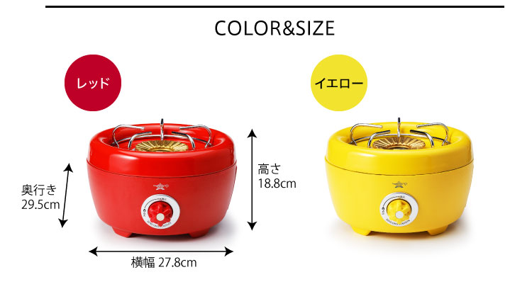 前回発売されたガスストーブも赤と黄色だったので、このメーカーのカラーなんでしょうね。