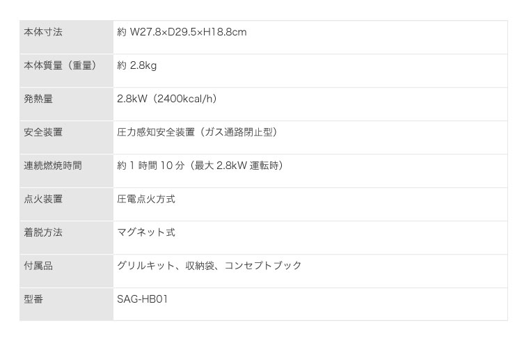 アラジンカセットガスコンロ【ヒバリン】のスペックは?