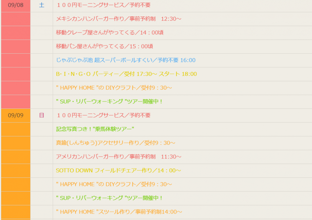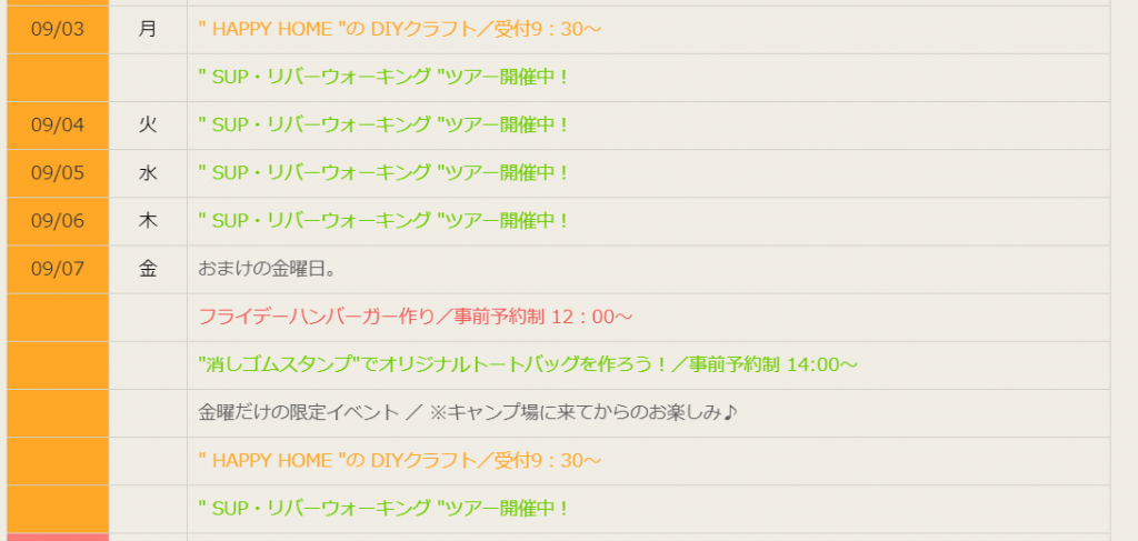 こちらが9月3日~9月7日までの平日のイベント内容です↓