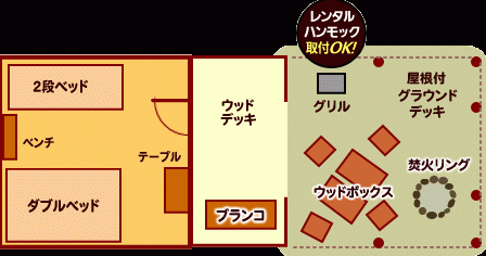 キャンプアンドキャビンズ那須のカントリーキャビン焚火(たきび)とは