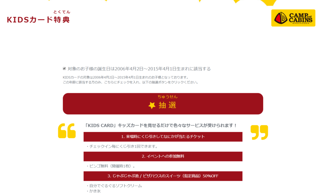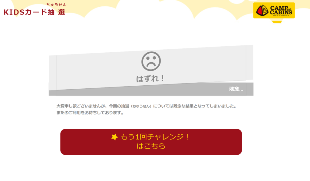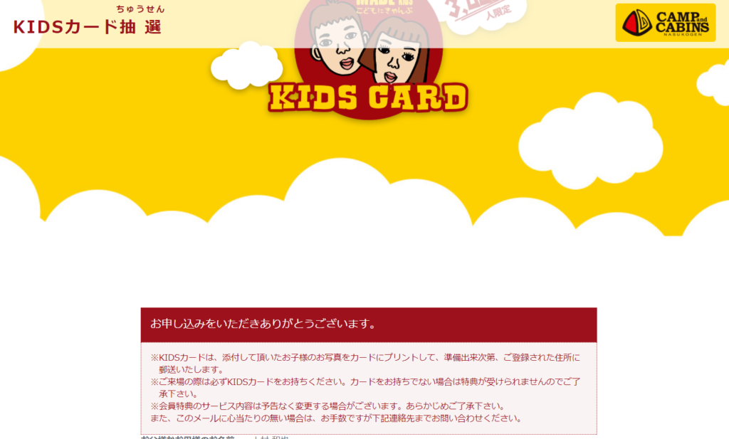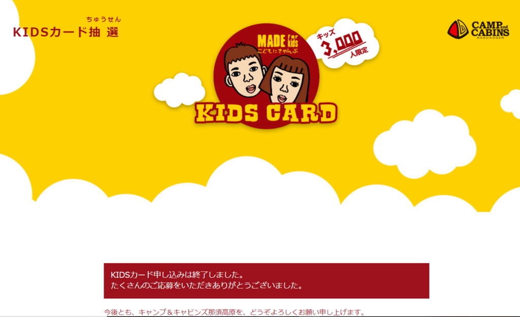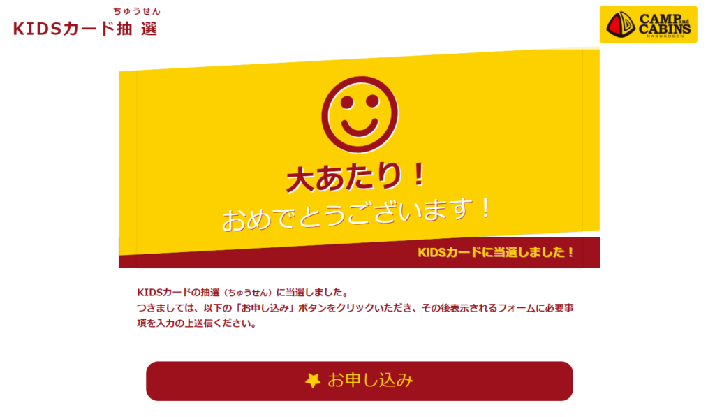 2018年キャンプアンドキャビンズのキッズカード当選までの流れ