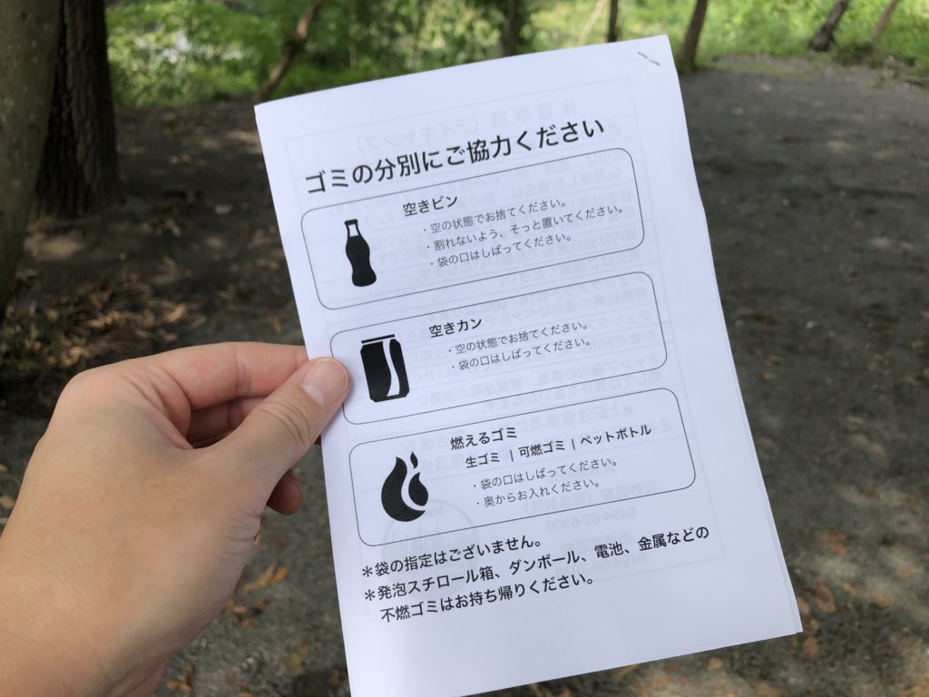 ちなみにごみはチェックイン時にサイト利用料に含まれている100円支払い捨てることができます。