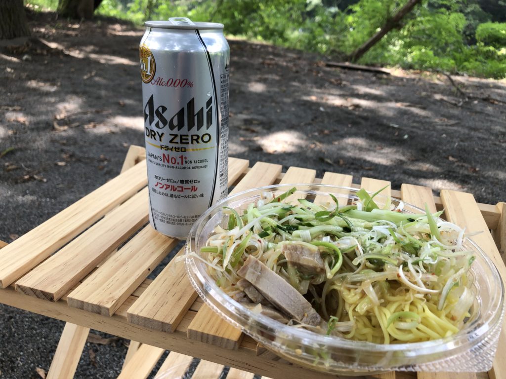 早速ノンアルとセブンイレブンの冷やしねぎラーメンで腹ごしらえ。