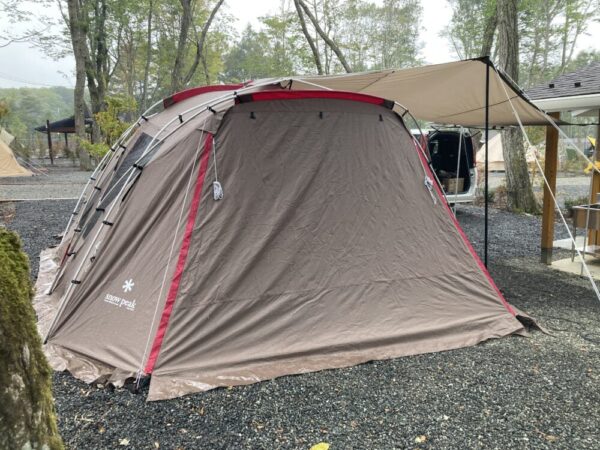 サイトも広く我が家愛用のランドロックに、購入後初貼りのランドネストのタープを合わせてみました。