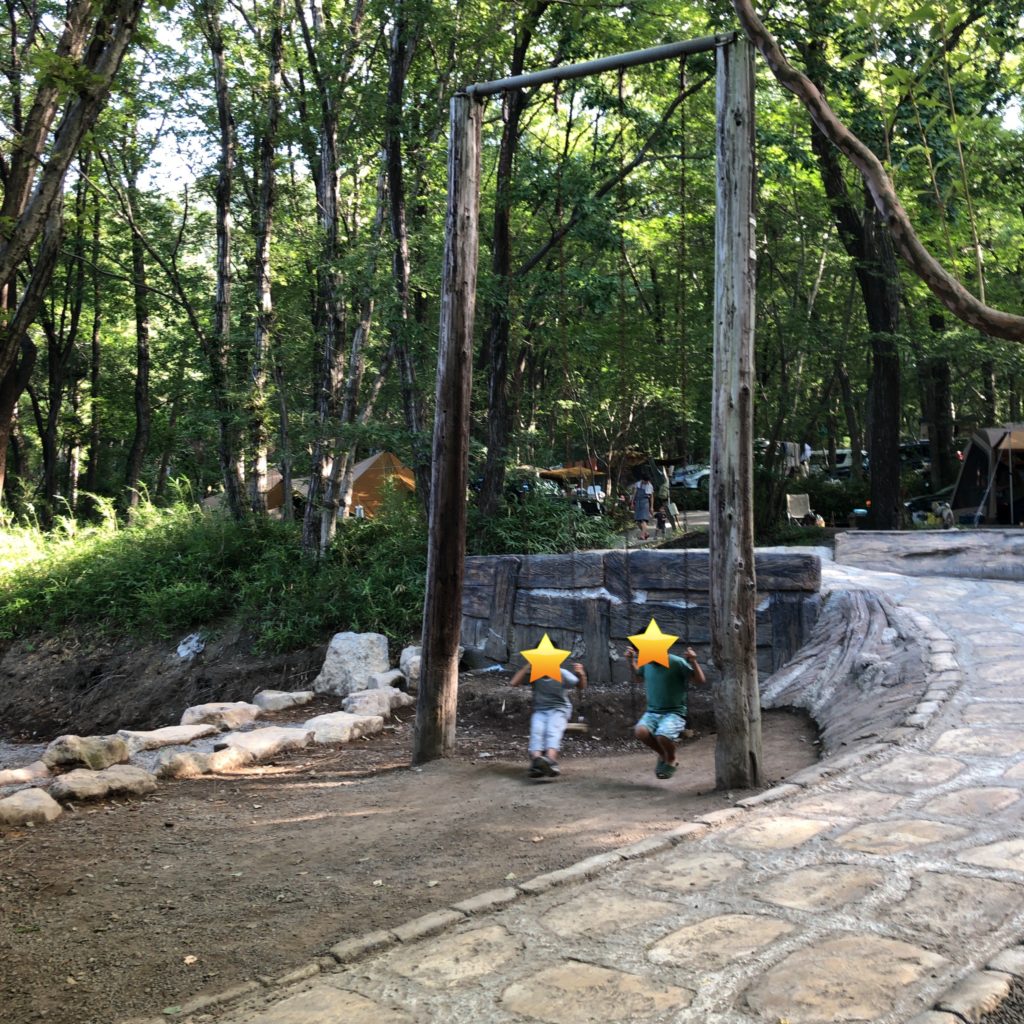 キャンプ場にはちびっ子の冒険心をくすぐるアスレチックを完備しているほか、