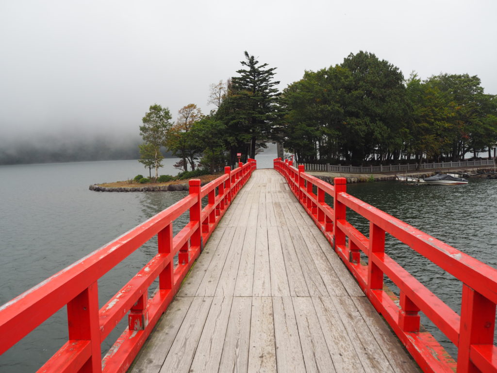 橋をくぐると鳥居があり、そこを湖沿いに進んでいくと・・・