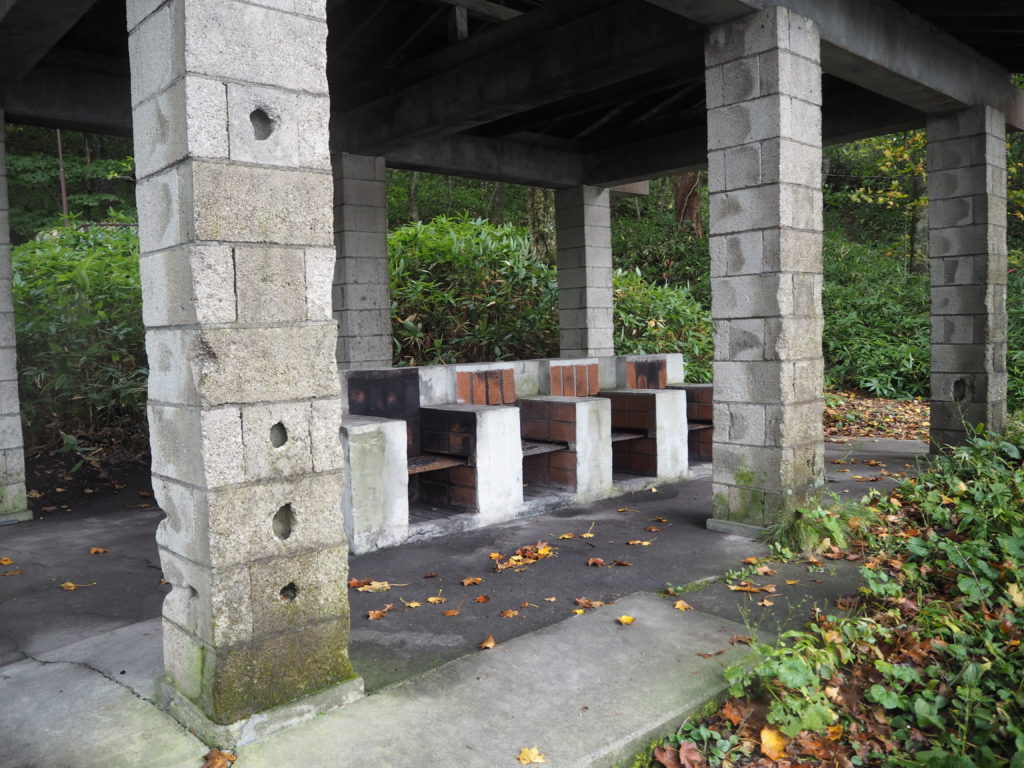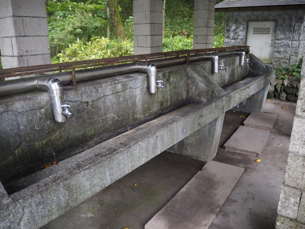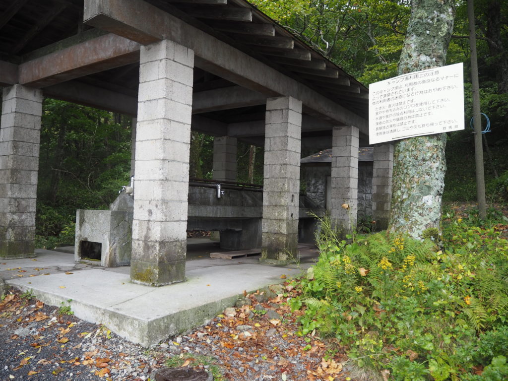 駐車場の山側に炊事場とかまどとトイレが並んであります。