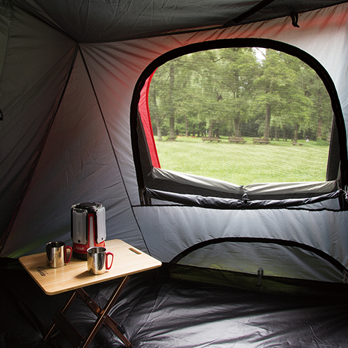 たてやすくワイドなリビングを備えた2ルームテント■必要に応じて、室内に光を取り入れることができるサイドウィンドウ
