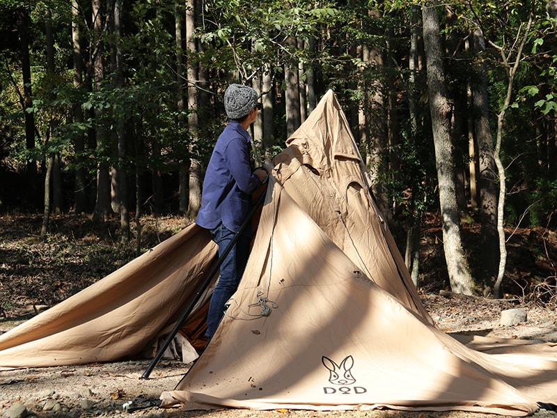 設営しやすく広々とした空間を実現でき焚火もできちゃう快適テント