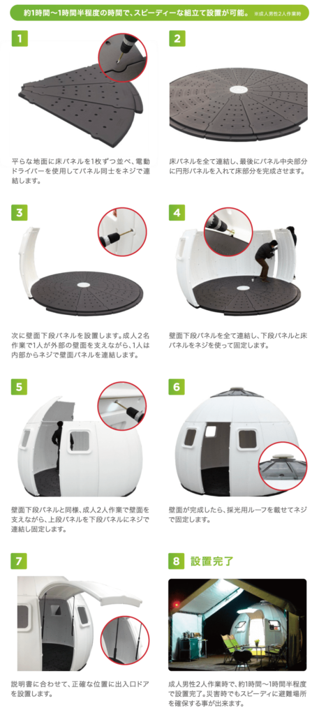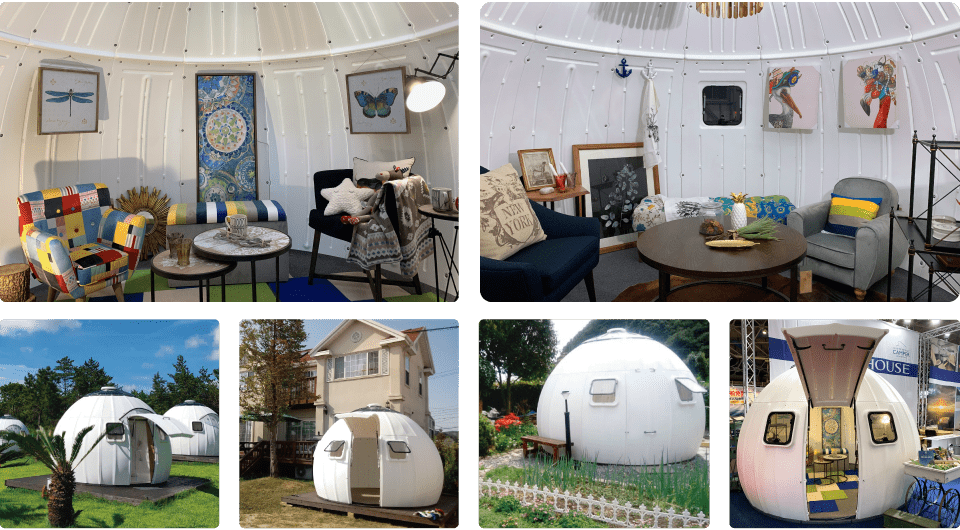 組み立てが簡単・便利なプレハブ工法による「イージードームハウス」は、従来の固定型住居や施設様式の概念とは異なる新しい居住空間スタイルを提案します。