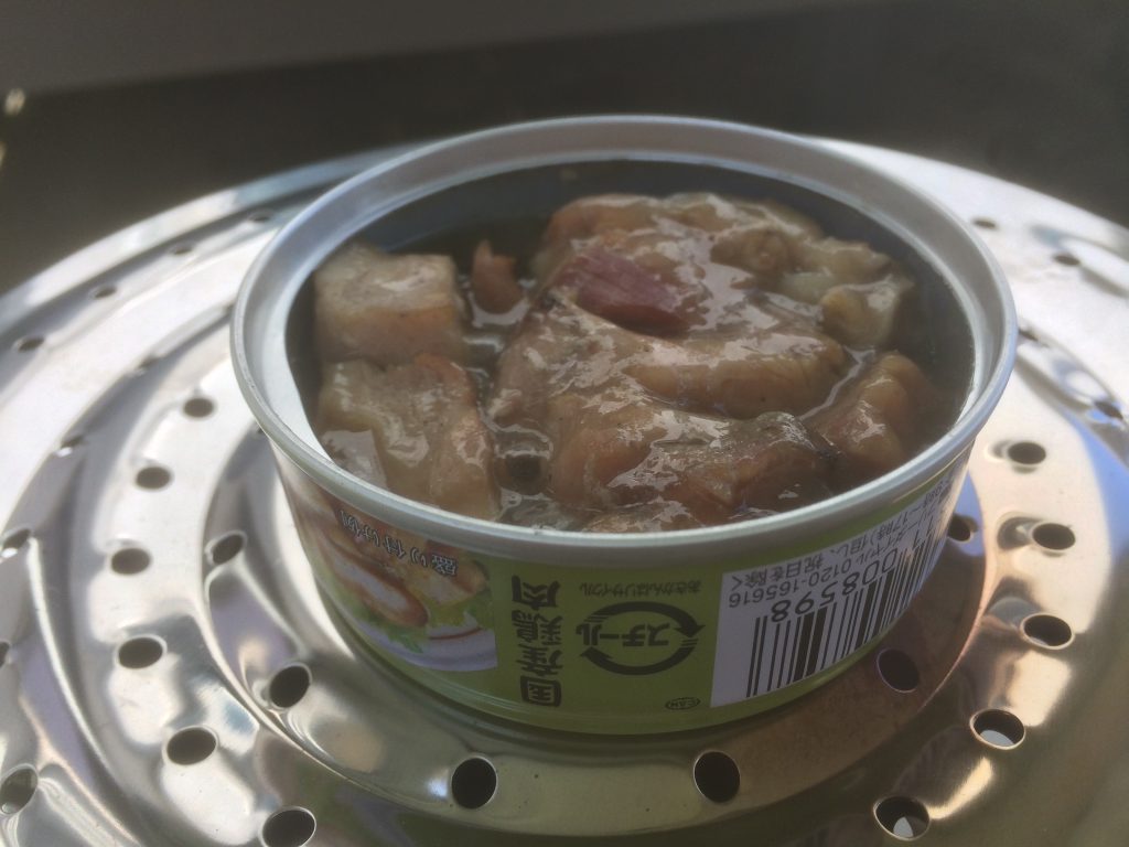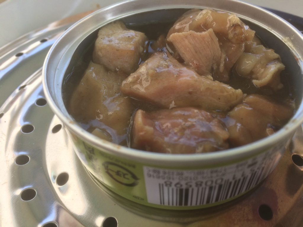 更に5分くらい経過して、缶詰の中がぐつぐつ煮えてきたので実践終了したいと思います!