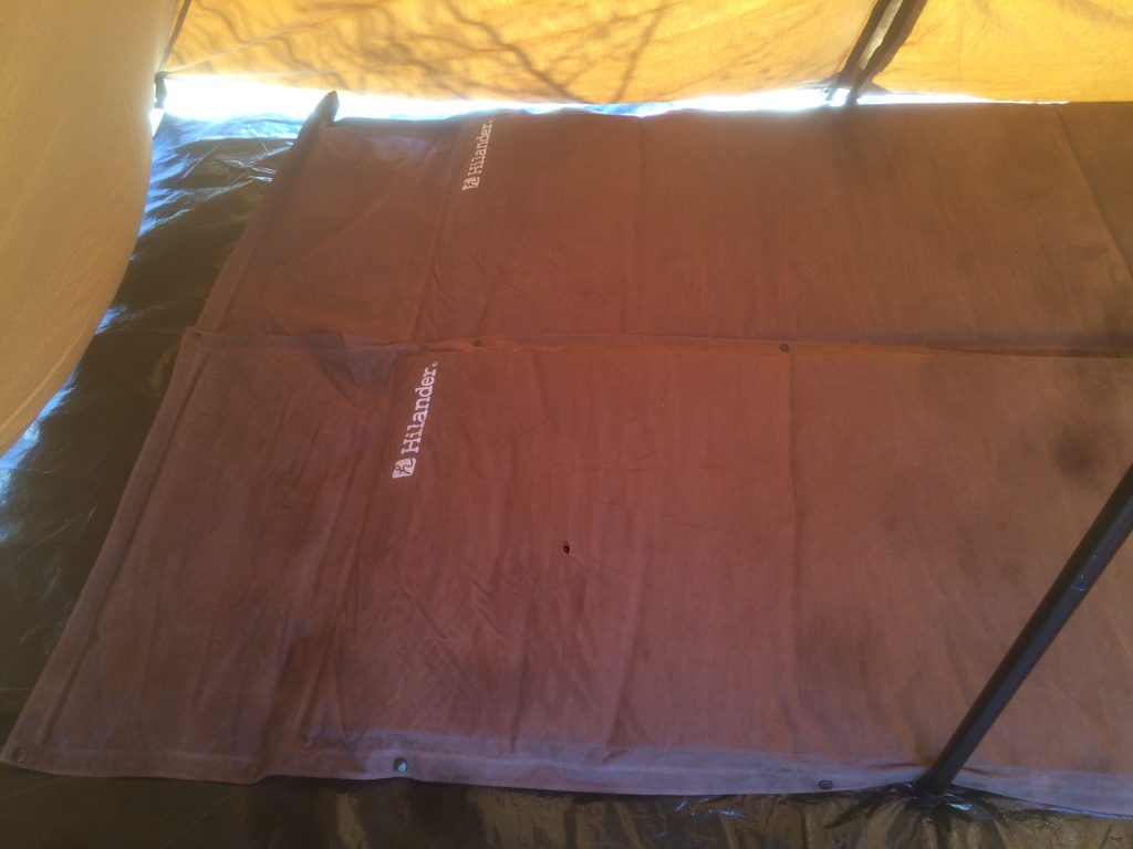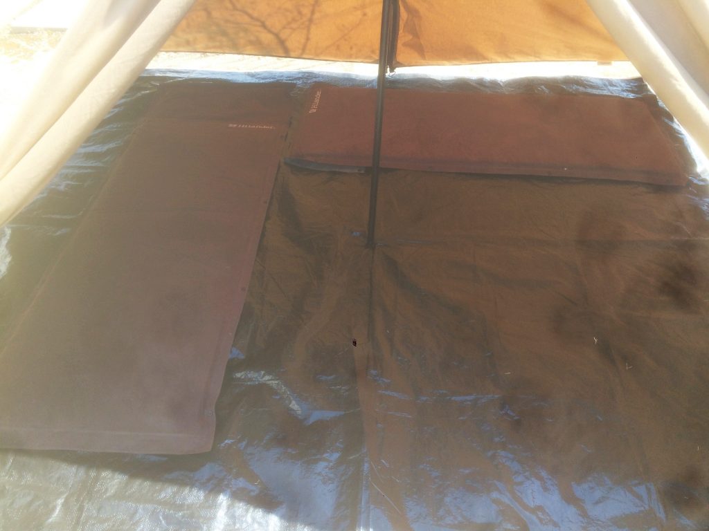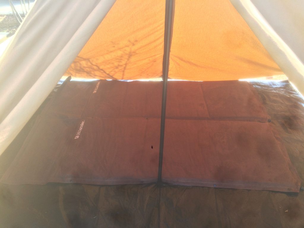 インフレーターマットシングルサイズを連結して、テントの中にinしてみました。