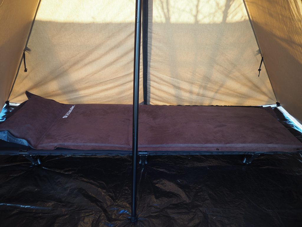 では次に、ヘリノックスのコットにも載せてみたのでよかったらご覧ください