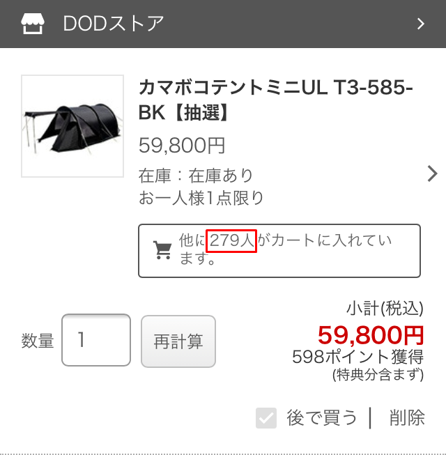 カマボコテントミニUL抽選倍率は?