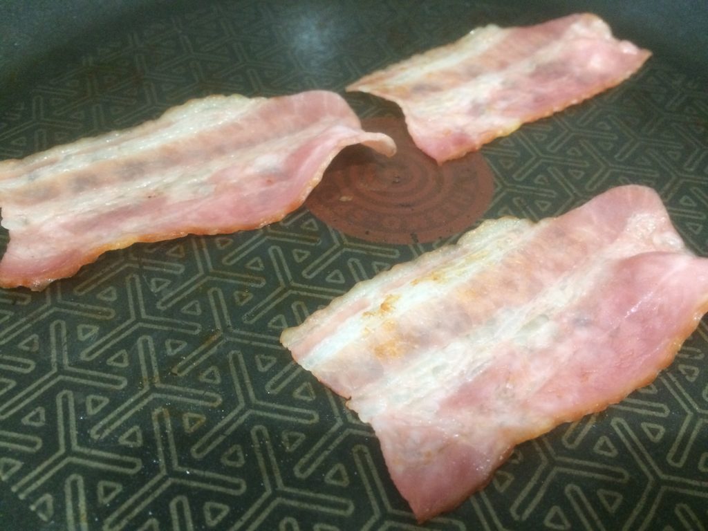 4、ベーコンをフライパンでカリカリになるまで焼く