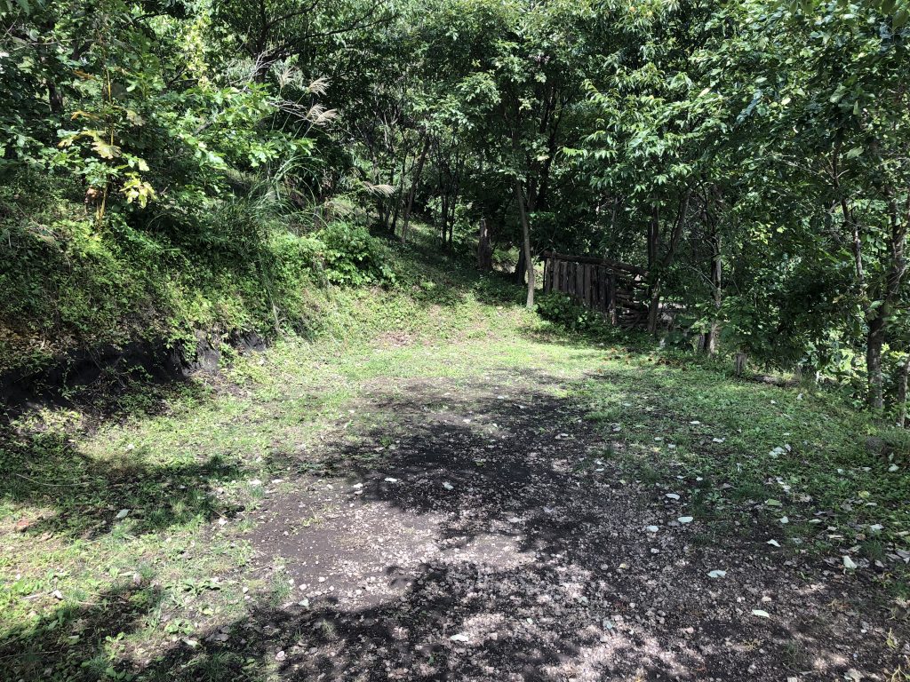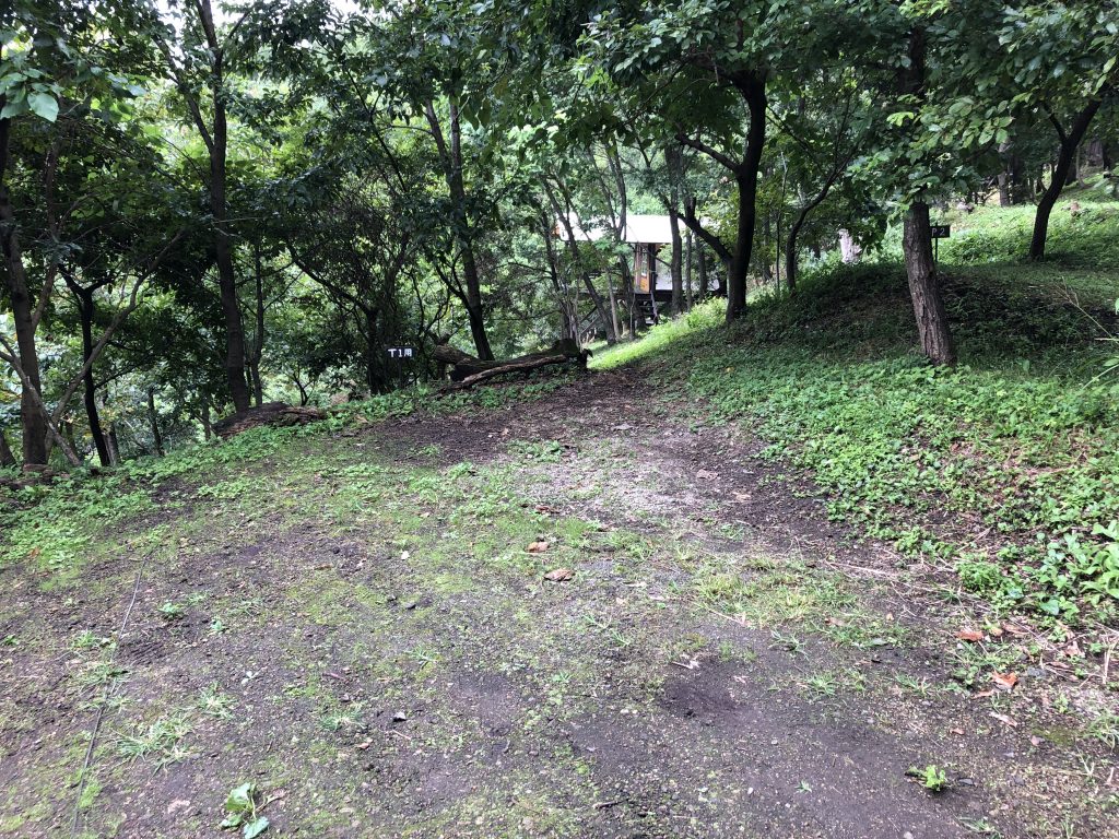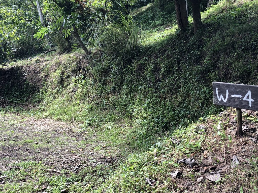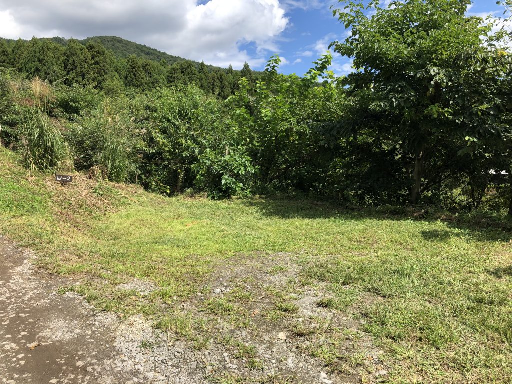 ※通路を補修し、4WDサイトではなくなりました。ただし砂利道の運転が苦手な方は登れない可能性がありますのでご遠慮ください。W5 約10×9mの広さ ※隣地の木が成長し、眺望はW6~9と比べて劣ります。