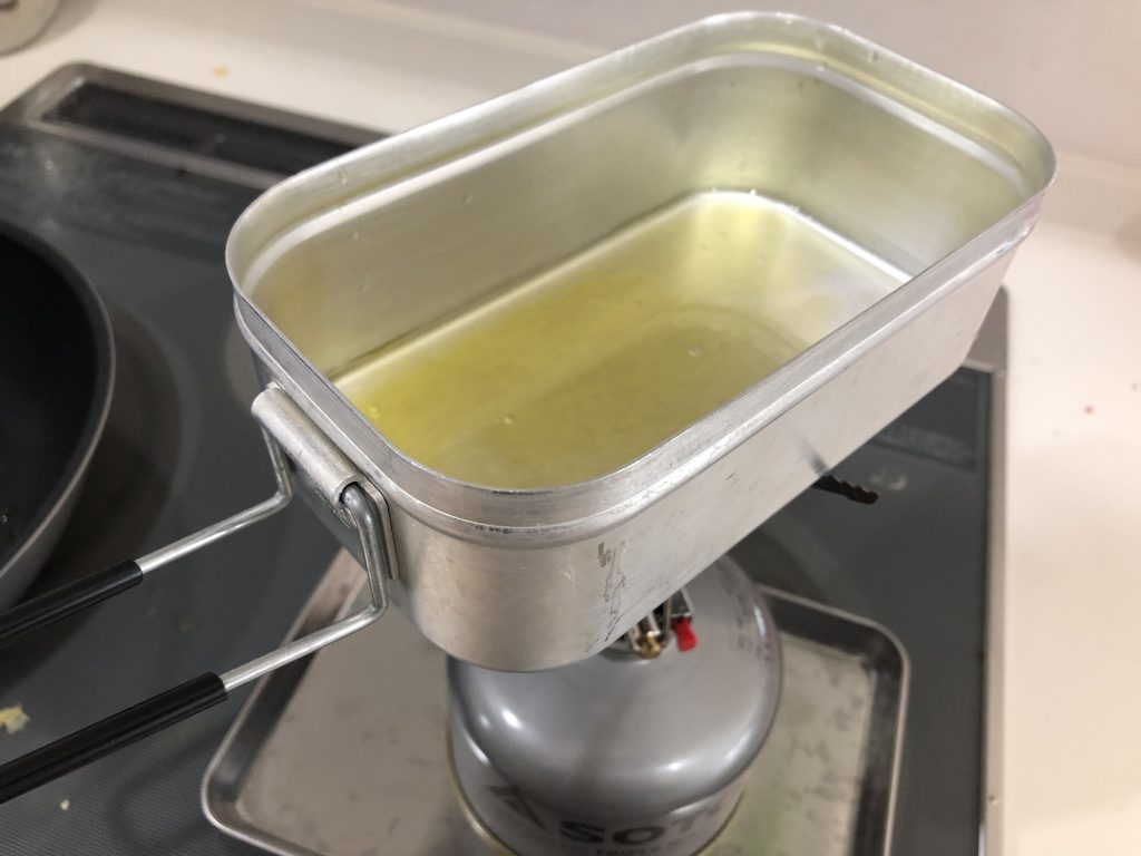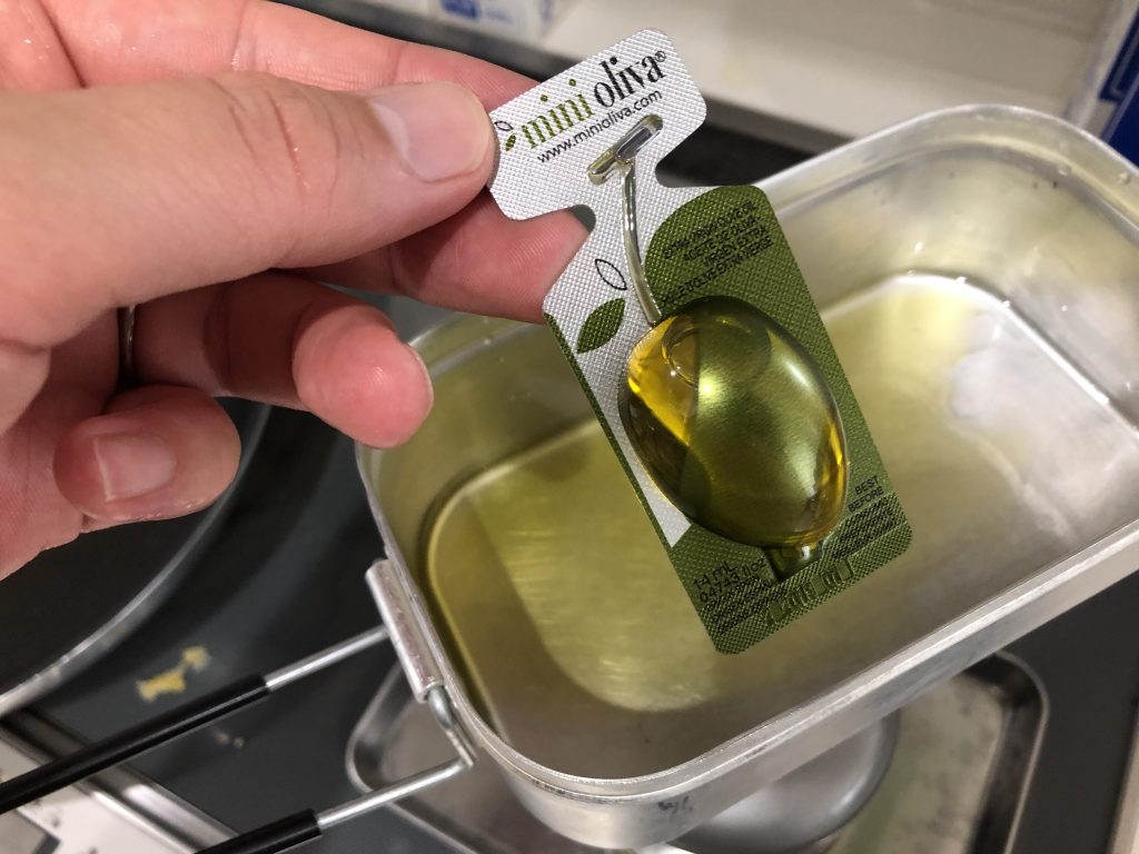 1. メスティンにオリーブオイルを入れます。