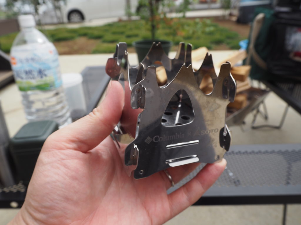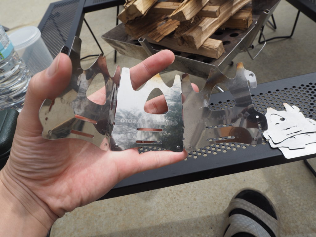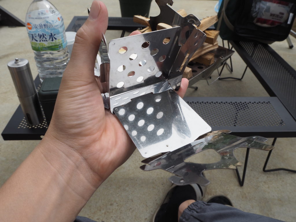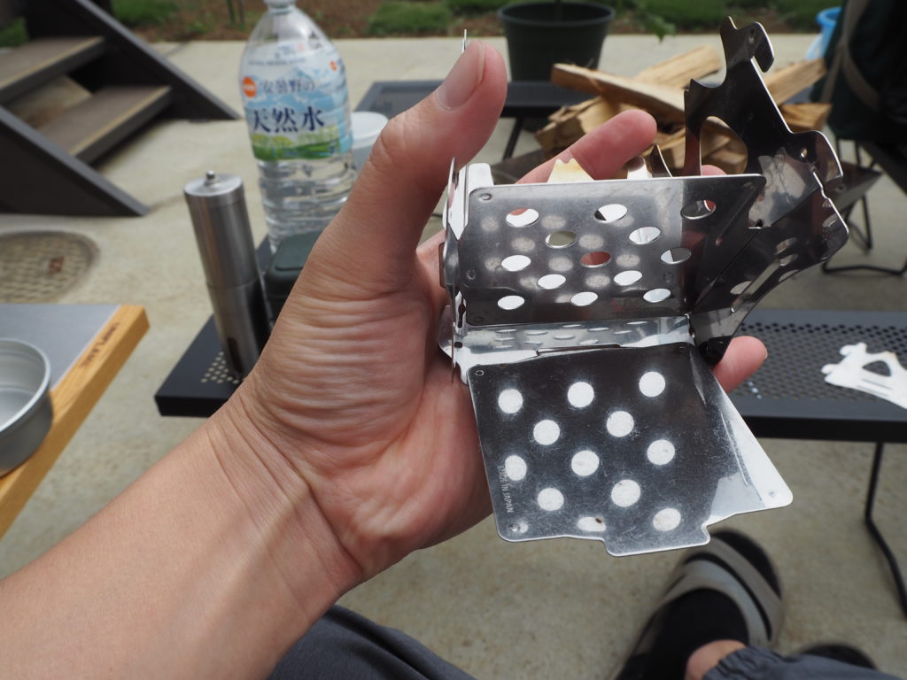 fam2015年秋号の付録に付いていたたき火台で薪と小枝をつかってたき火しました。