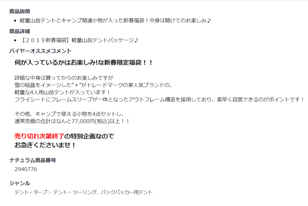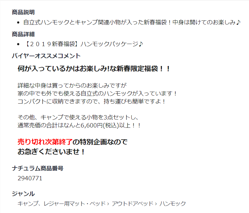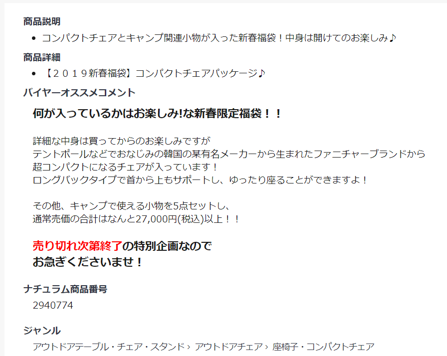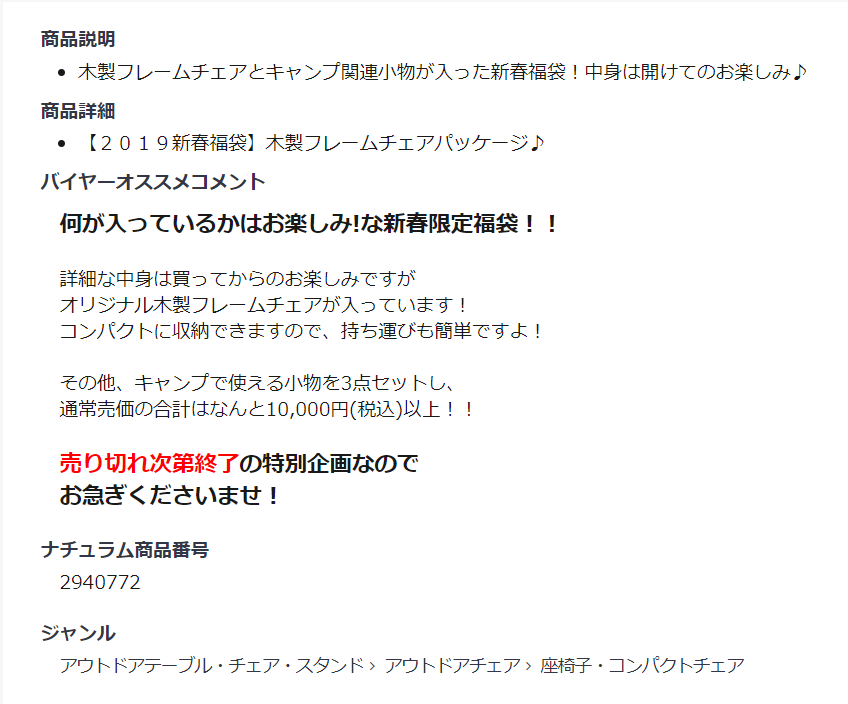 2019ナチュラム福袋発売!GETする方法
