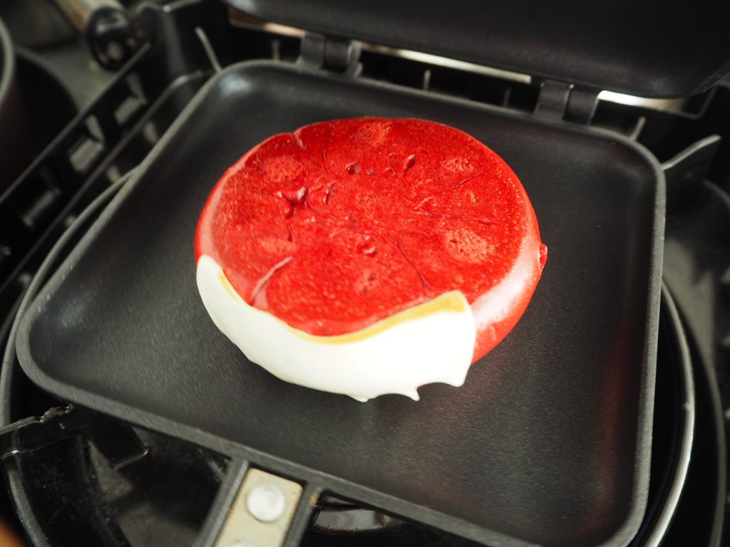 オラゴンまんをあつあつホットサンドメーカーの上にのせます!