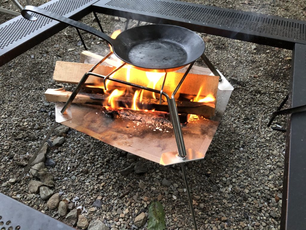 タープの前で余裕でたき火料理なんてできちゃいます。