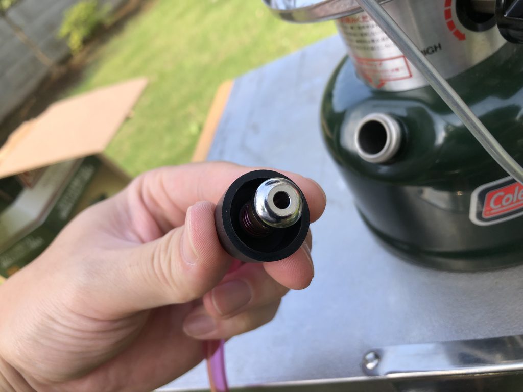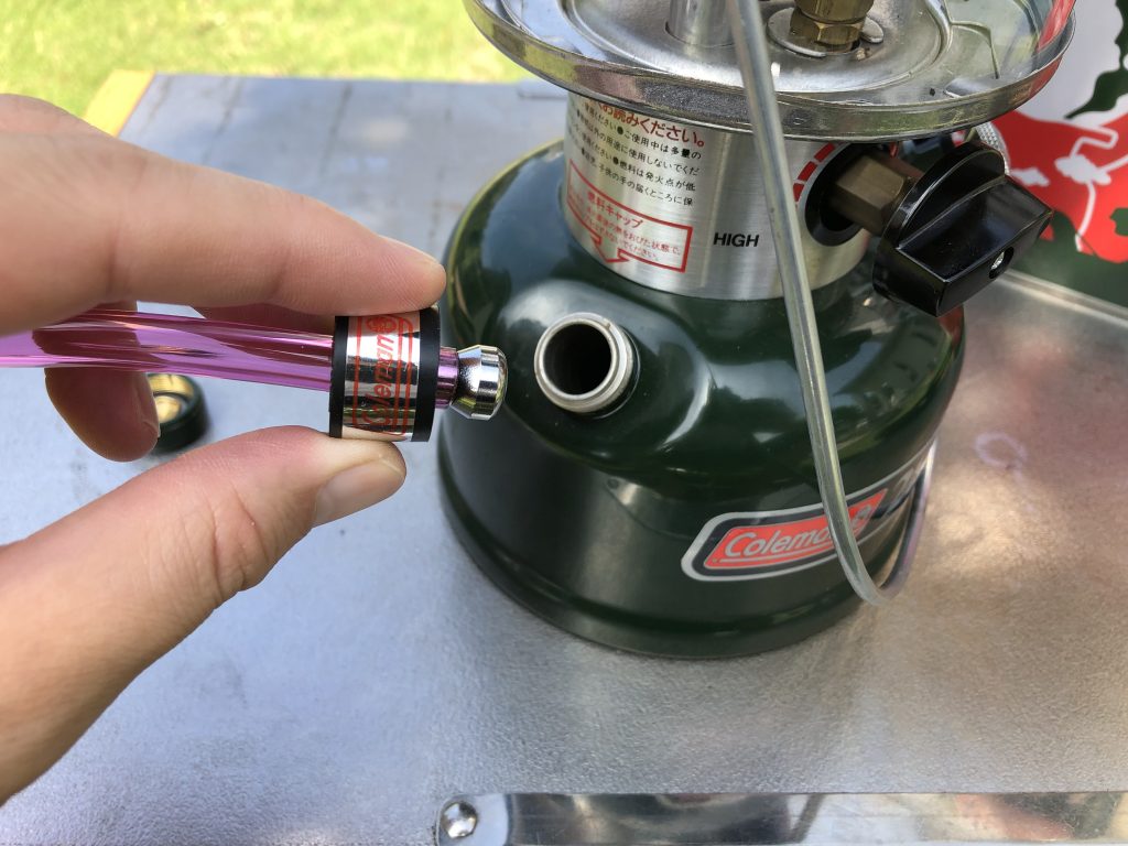 取り付けたら先端の部分をガソリンランタン底まで押し込みます。
