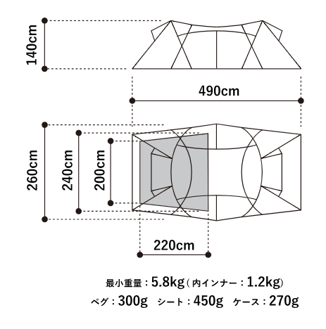 ちなみに、スノーピークのヴォールトの大きさはこちらです↓