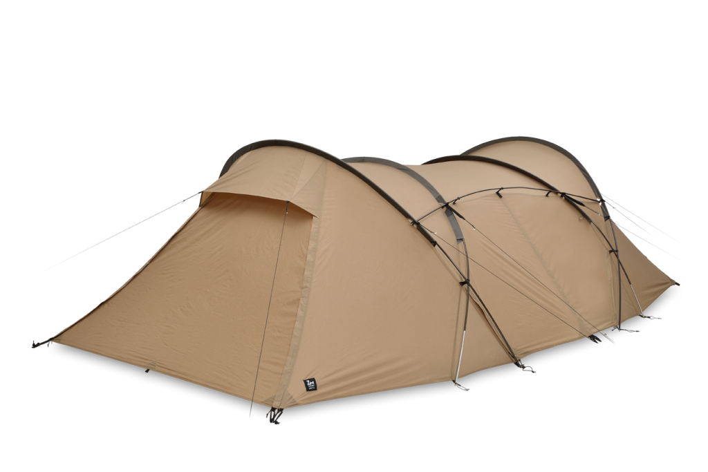 2つのダブルクロスフレーム(魚座型)をブリッジフレームでつないだ構造は、耐風性に優れ、日本の山岳のベースキャンプ用としても充分にお使いいただける仕様となっています