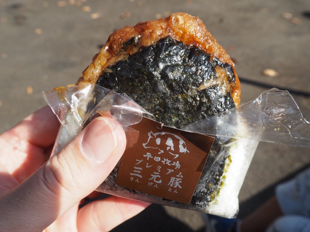 レンタサイクルわきにある売店で売られていたとんかつおにぎりをGET!