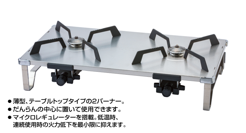 こちらの商品は今までの2バーナーと違ってかなり薄型で非常にコンパクトです!