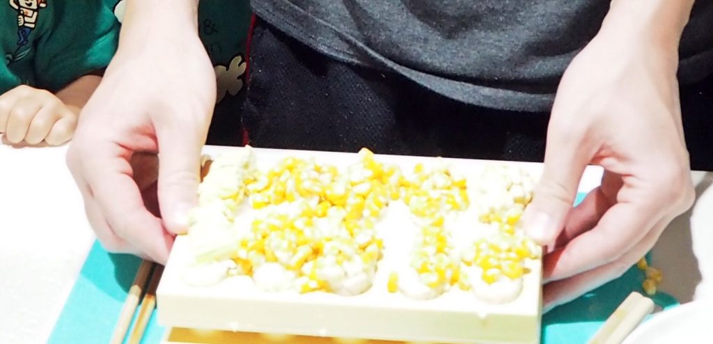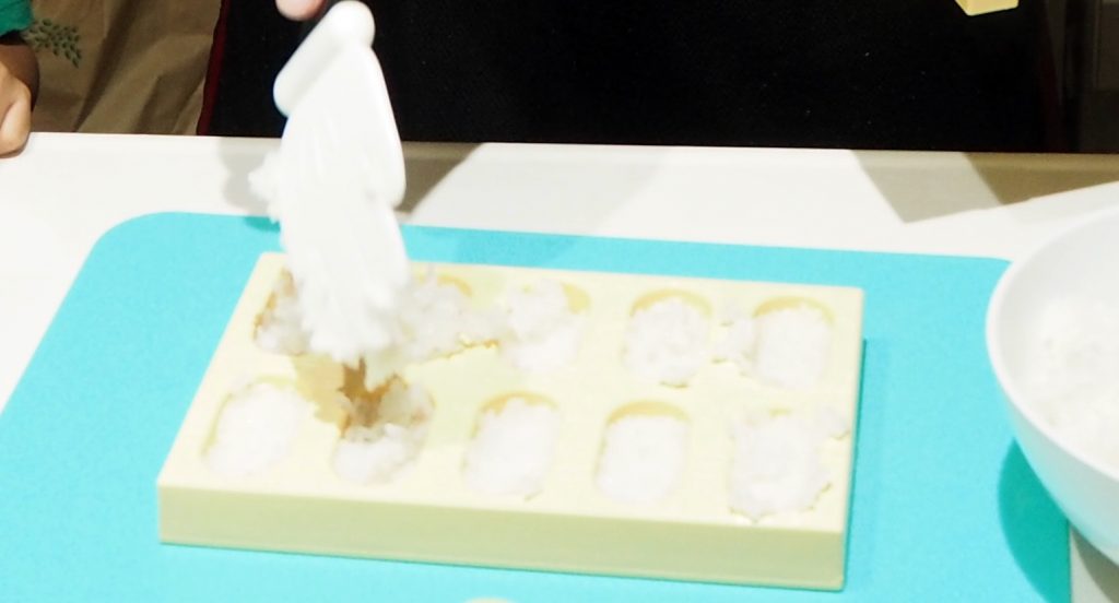 ご飯が入れ終わったら、もう一つのキットの上の凸の側を下にむけて