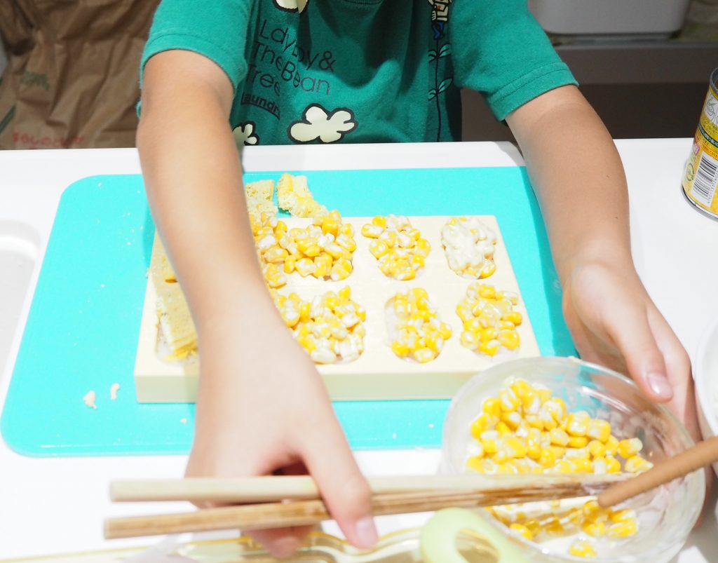 具材をのっけた握りずし側を、凸のキット側を上に向けてその上にのせていきまーす!