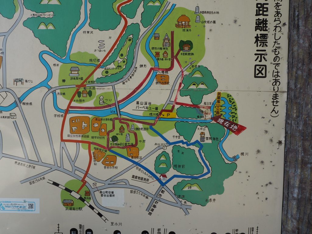 電車の場合だと、東武東上線の武蔵嵐山駅を降りて徒歩で59分かかるみたいです!うーん。。。